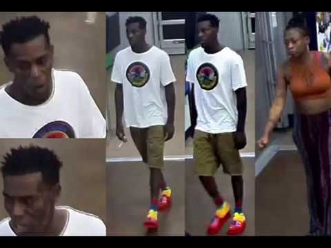 Suspect description: Black male, white shirt, light colored shorts, red, yellow and blue shoes.